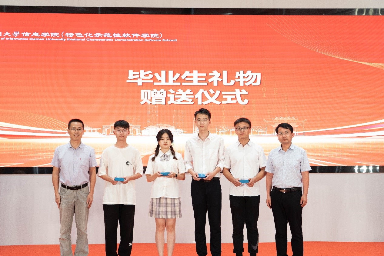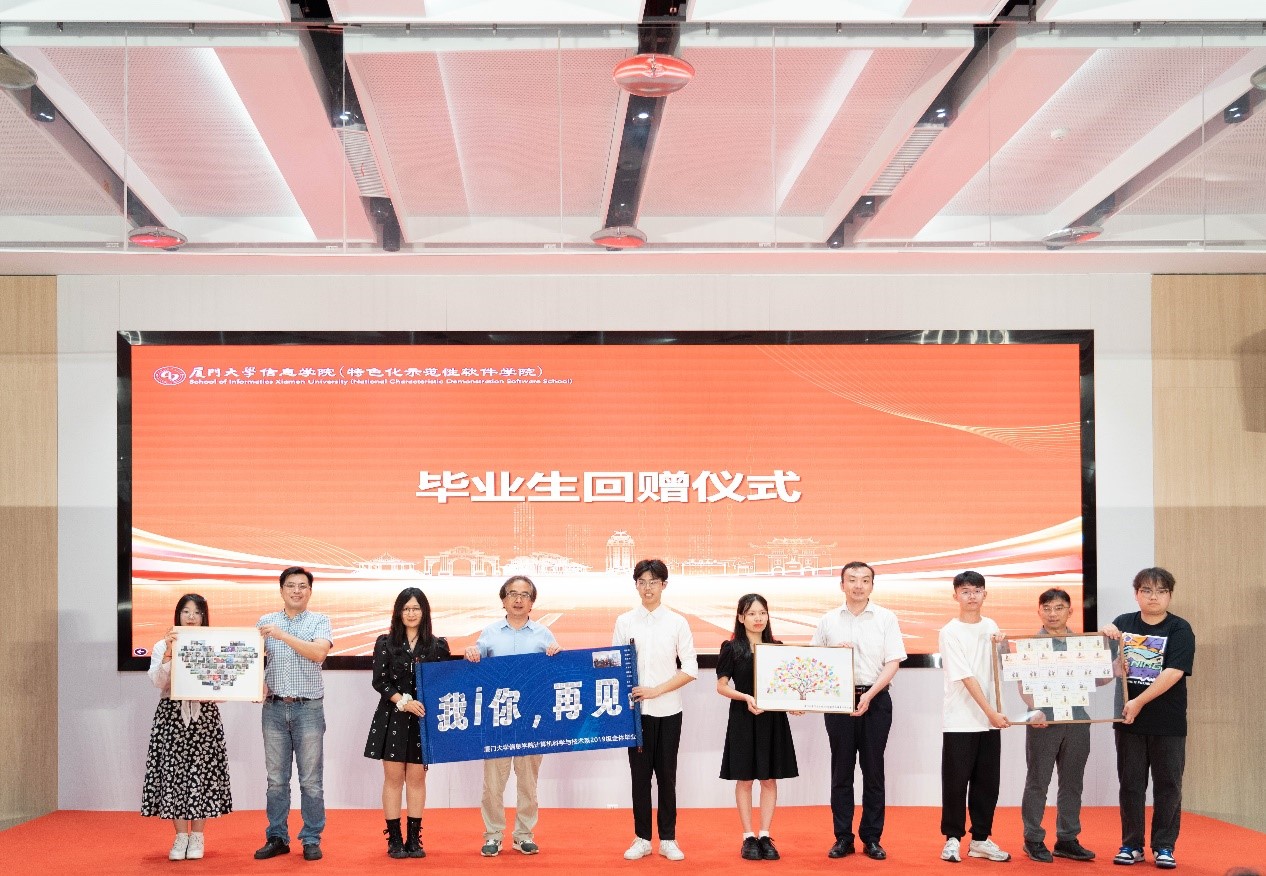 学院与毕业生互赠礼物,学院为毕业生们准备了印有自己名字的印章,每名厦大信息毕业生的名字镌刻章底,寄托了母院“自强不息、止于至善”的深情期望。毕业生代表向母院赠送书法、手工作品等礼物,表达他们的感激之情。