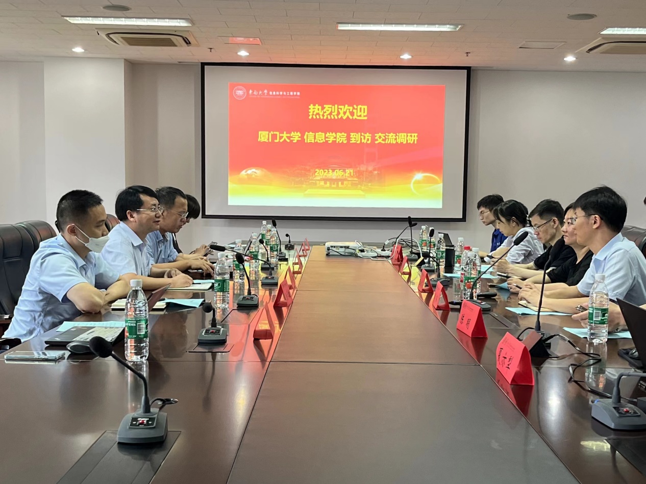 为学习兄弟高校的优秀办学经验,加强校际合作交流,提升厦门大学信息学科办学水平,坚持以学铸魂、以学增智、以学正风、以学促干,深入开展主题教育,6月21日,信息学院副院长张俊松带队前往南京大学计算机科学与技术系和人工智能学院、东南大学信息科学与工程学院开展调研学习,信息学院人工智能系副系主任江敏、软件工程系系主任张仲楠、信息与通信工程系系主任孙海信、教师代表曲延云、洪学敏等人参加此次调研。
