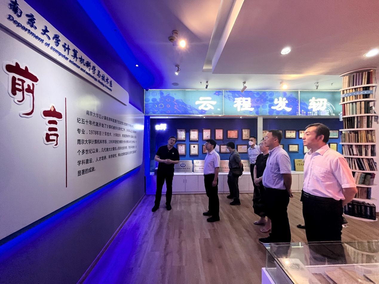 6月21日上午,南京大学计算机科学与技术系和人工智能学院党委书记武港山、计算机科学与技术系副系主任马晓星、人工智能学院副院长黎铭及计算机科学与技术系研究生党政办公室主任张剡与信息学院一行座谈交流。座谈开始前,在张剡的陪同下,调研团队首先参观了系史馆,张剡对南京大学计算机科学与技术系做了总体介绍,提及与厦大的渊源。在座谈中,武港山对信息学院的到访表示欢迎,并对学院进行了详细介绍,双方就党建引领、学科建设、平台支撑、师资队伍和人才培养等问题进行了深入探讨交流。