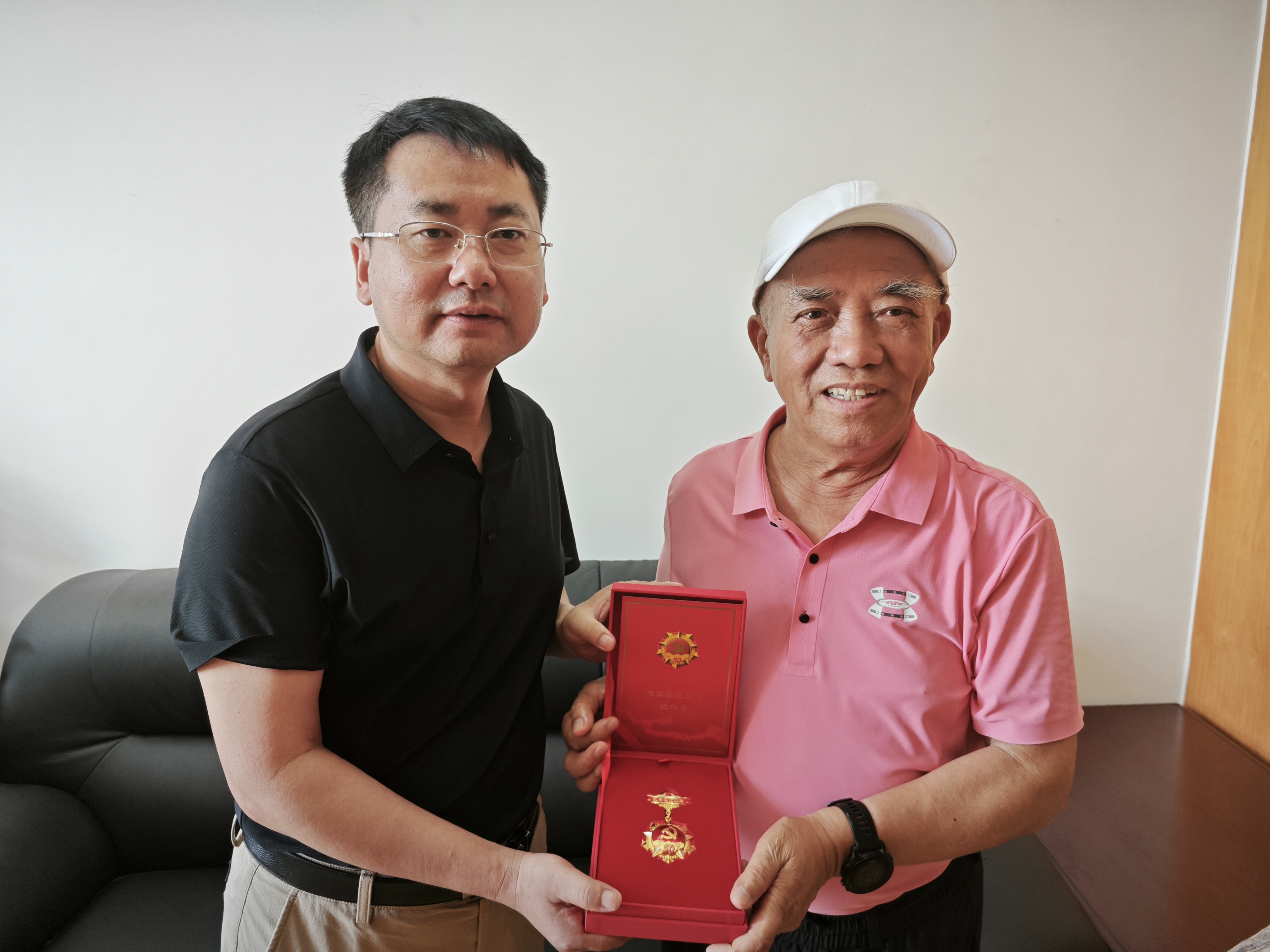 在建党102周年之际,信息学院党委开展“七一”慰问老党员活动。院党委书记刘弢、副院长张俊松分别看望了退休党员陈道乾、王博亮老师,代表学院党委致以亲切问候,并为他们佩戴“光荣在党50年”纪念章。