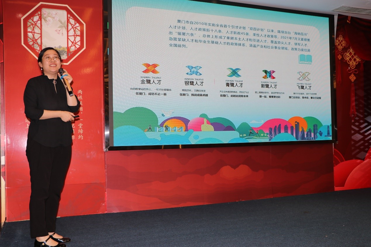 集美区工业与信息化局招商执行主任于淑雅向在场营员介绍厦门集美产业情况、发展优势以及高层次人才政策,为未来校企合作、汇聚人才奠定基础。