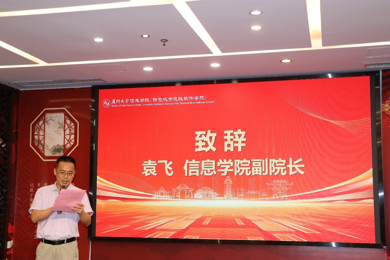7月14日,厦门大学信息学院2023年全国优秀大学生夏令营闭幕。闭营晚会上,信息学院副院长袁飞教授致闭幕词,他对夏令营期间学子们的出色表现表示高度赞赏,向信息学院老师和研究生会工作人员的辛勤付出表示感谢。