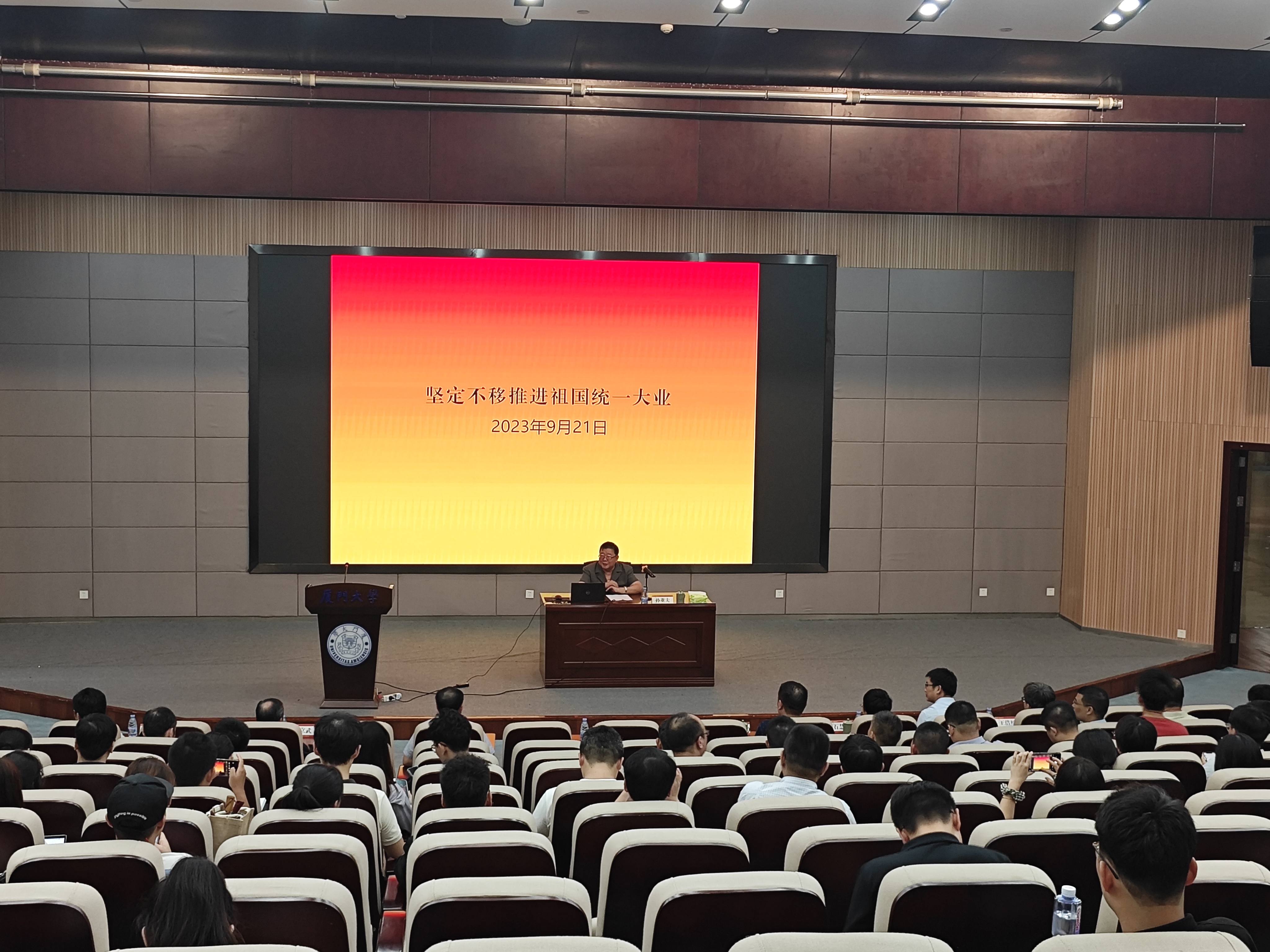 孙亚夫回顾了两岸关系40年来的发展历程,详细分析了新时代台湾问题的复杂性、台海形势的未来走向以及新时代党解决台湾问题的总体方略和党中央对台工作决策部署,重点就近期发布的《中共中央国务院关于支持福建探索海峡两岸融合发展新路 建设两岸融合发展示范区的意见》做了解读。他指出,我们要有更高的战略视野和坚定的战略自信,牢牢把握两岸关系主导权和主动权,继续推动两岸关系和平发展、融合发展,凝心聚力推进祖国统一。