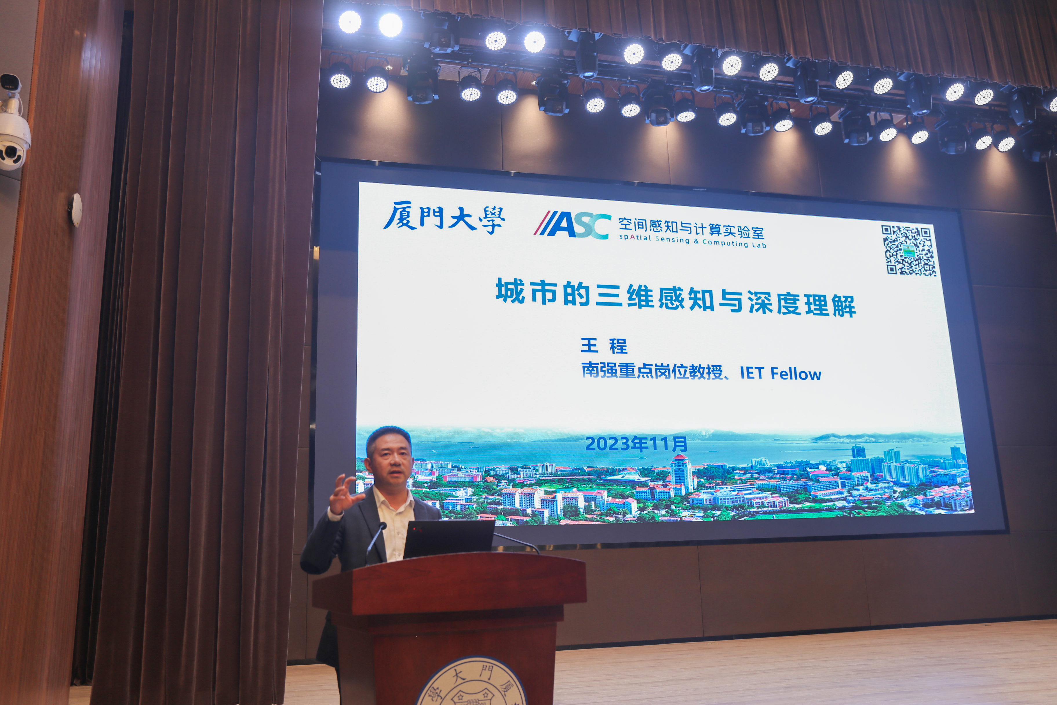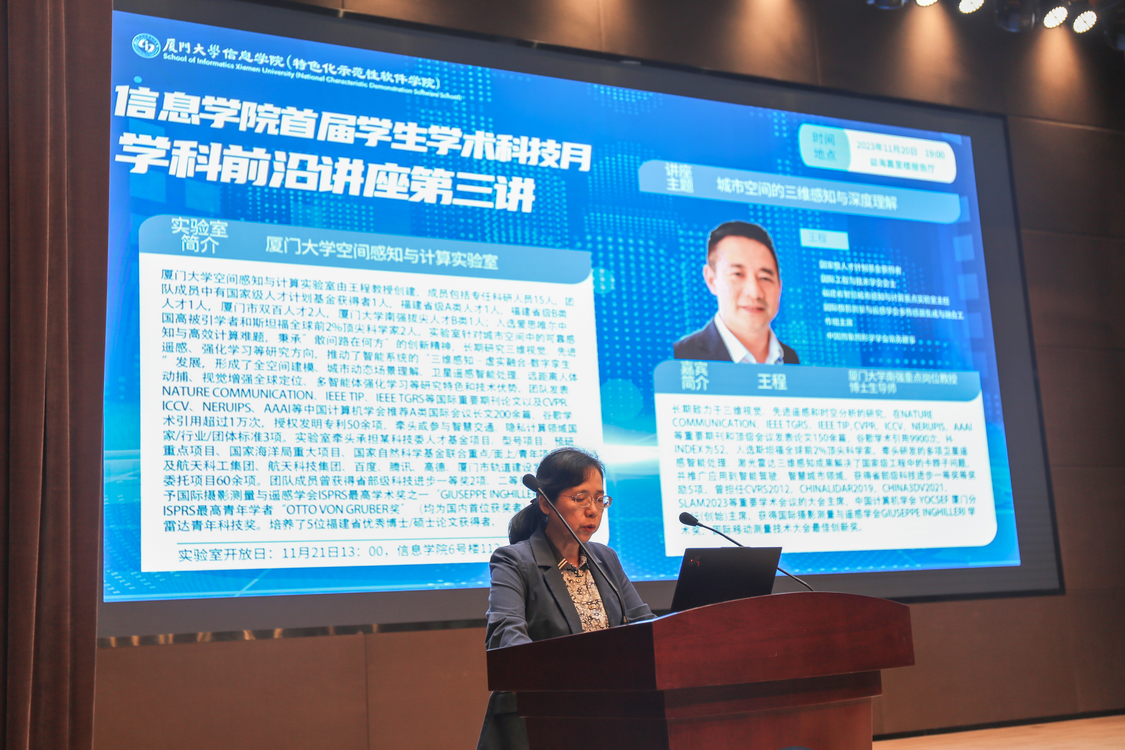 11月20日晚,信息学院首届学生学术科技月学科前沿讲座第三讲在翔安校区益海嘉里楼报告厅举行。厦门大学教务处处长王程教授为同学们作《城市空间三维感知与深度理解》专题讲座。信息学院党委副书记龙坚毅主持本次讲座。