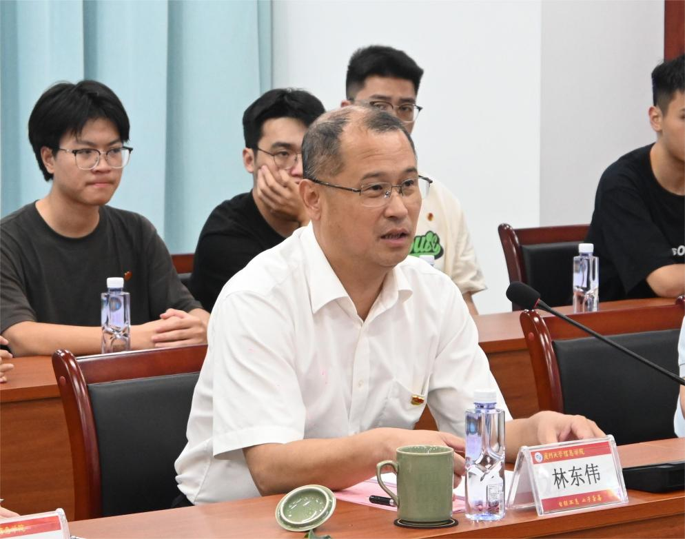 7月4日晚,校党委常务副书记林东伟在正信楼108会议室为信息学院师生讲授主题为“挺膺担当、强国有我,为中国式现代化奉献青春力量——走好新时代科技自立自强之路”的思政课。信息学院党委书记刘弢主持。