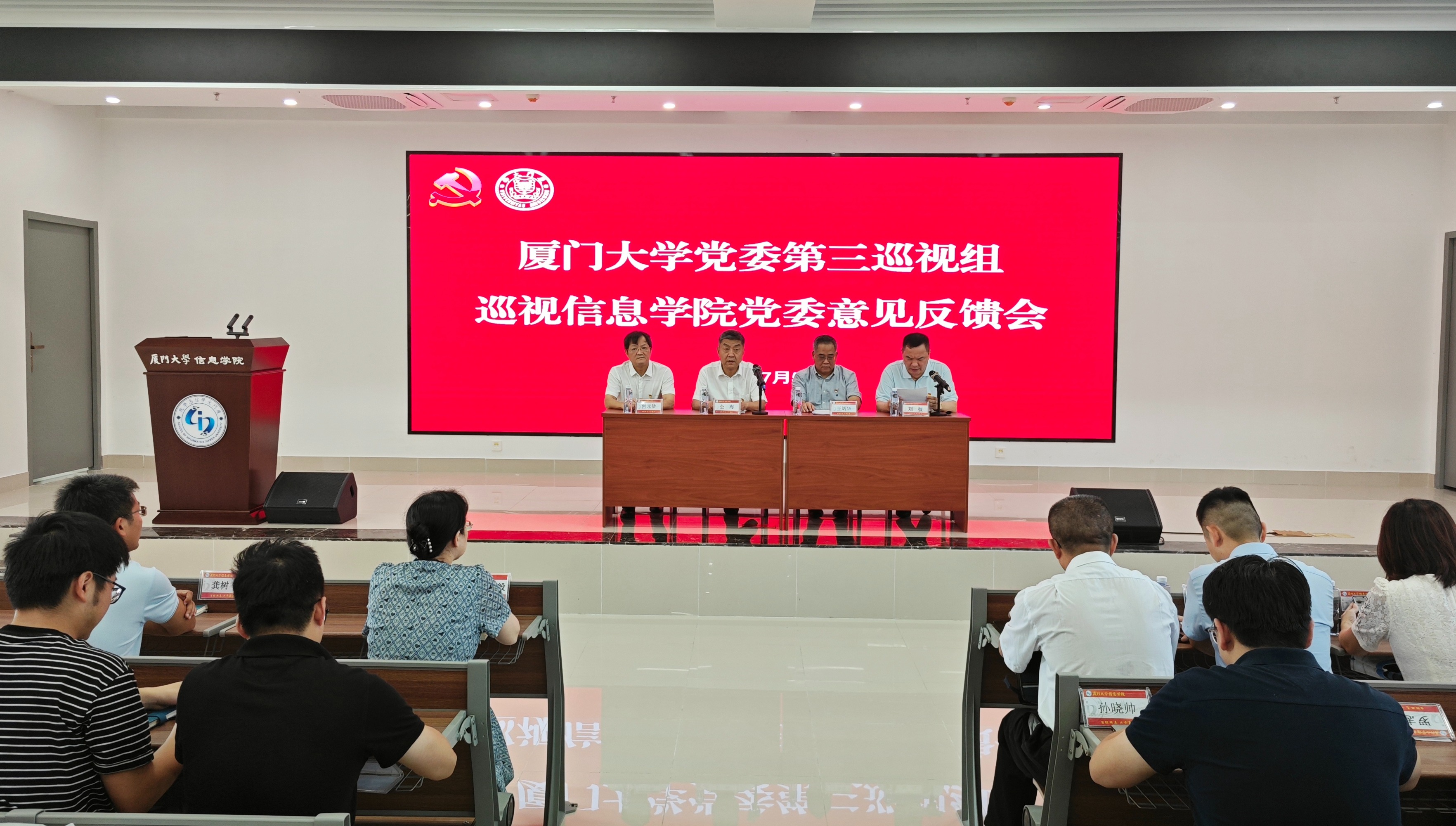 根据十二届校党委第二轮巡视部署,7月5日下午,校党委第三巡视组巡视信息学院党委意见反馈会在翔安校区西部片区信息学院4号楼106报告厅召开。校党委副书记、纪委书记、国家监委驻厦门大学监察专员全海代表校党委提工作要求。校党委第三巡视组组长王炳华反馈巡视意见。第三巡视组副组长何元赞,校巡视办主任洪真裁,校纪检监察机构、组织部代表,第三巡视组其他成员出席动员会。信息学院党委书记刘弢主持会议。
