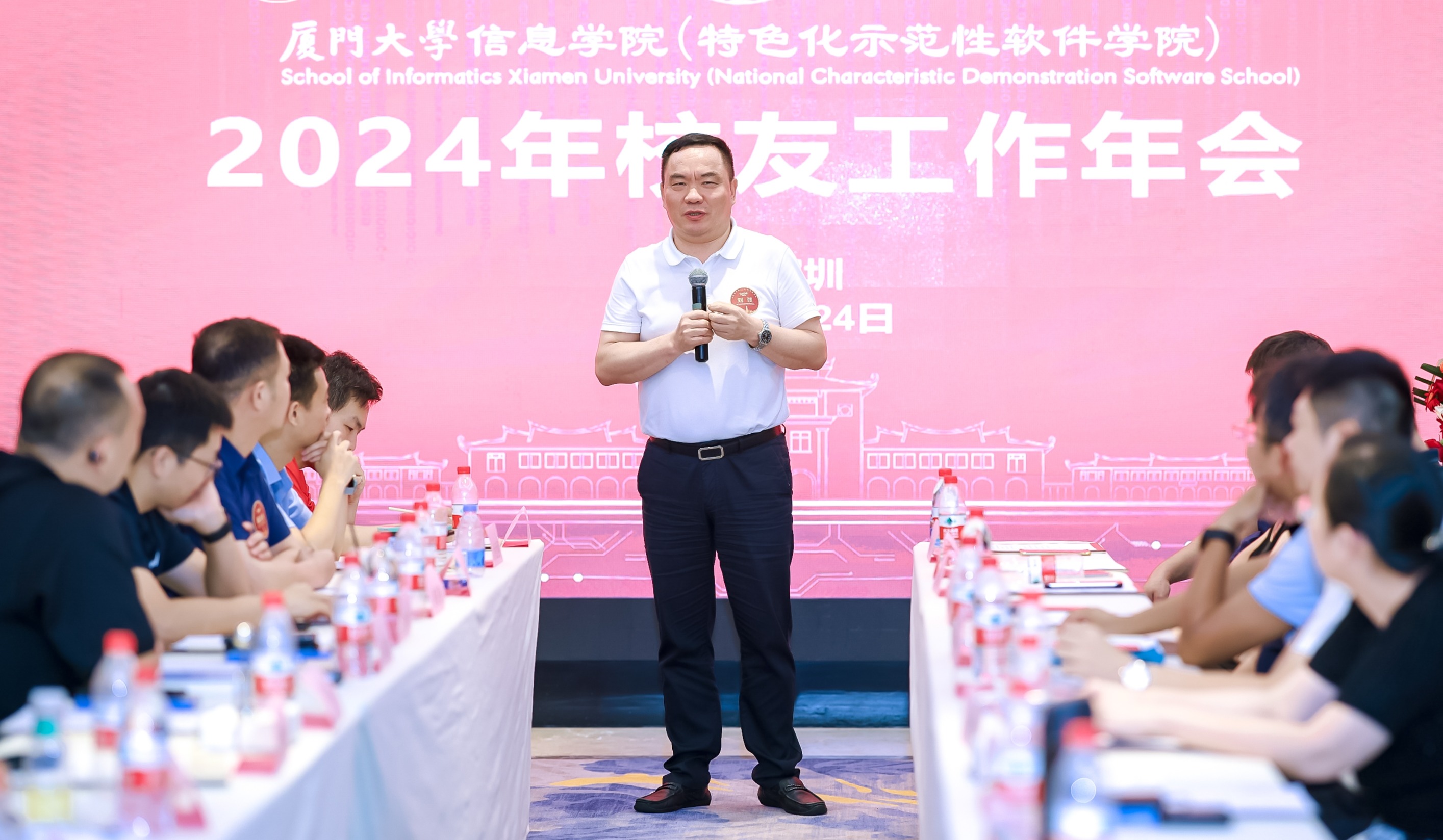 信息学院2023年建立校友工作年会制度,自2023年起,每年由一地校友会承办学院校友工作年会。作为本次活动承办方,深圳校友会会长田卫东在会上致欢迎辞,下届校友工作年会承办方——福州校友会会长高钦泉作了表态发言。