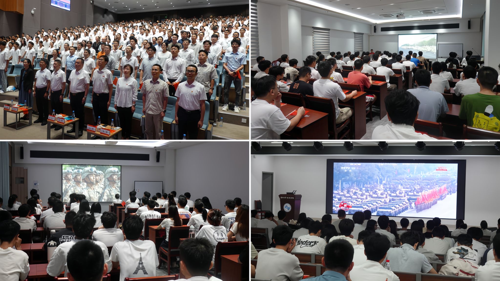 上午9时,院党政领导、党委委员、教工党支部书记、支委,“青年先锋”教工党支部、“强信工程”学生党支部成员和2025级全体学生共1200人分别在益海嘉里楼报告厅等4个会场集中收看,认真聆听习近平总书记重要讲话,怀着兴奋激动的心情观看阅兵式。当看到45个方(梯)队依次通过天安门广场,特别是网络空间部队、信息支援部队方队等首次亮相阅兵式时,现场响起阵阵掌声。观看结束时,全场观众挥舞着手中的国旗,高呼“正义必胜”“和平必胜”“人民必胜”口号,将会场气氛推向高潮。