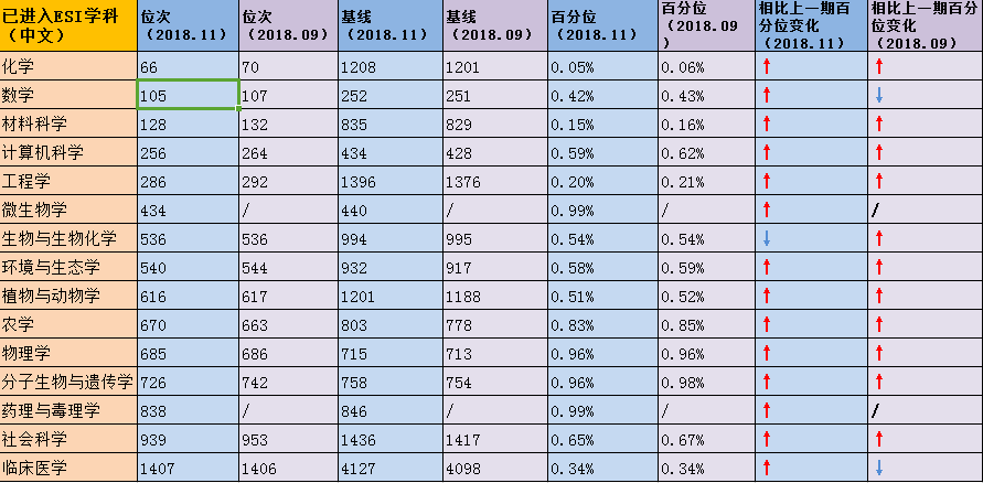 (2018年11月与2018年9月ESI计算机学科排名数据对比)