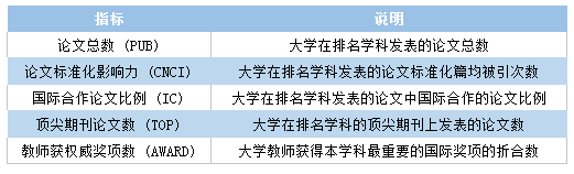 2018软科世界一流学科排名-排名指标