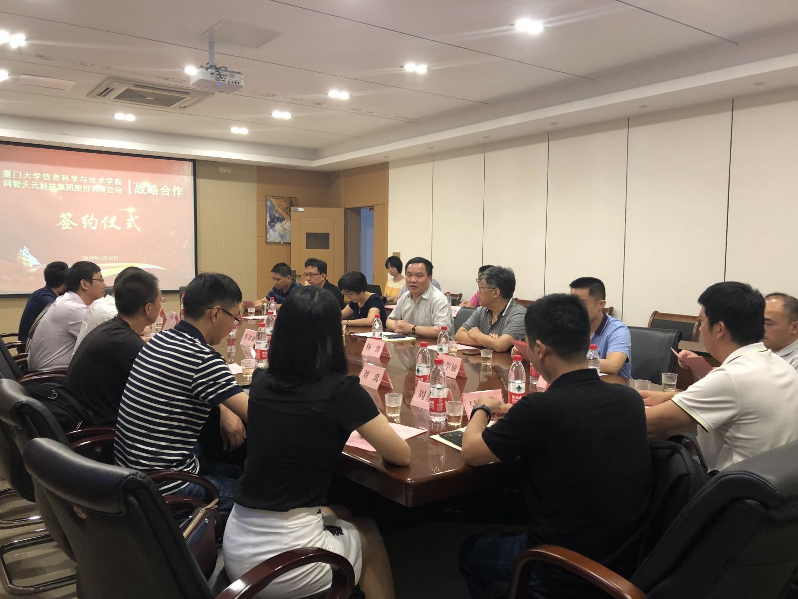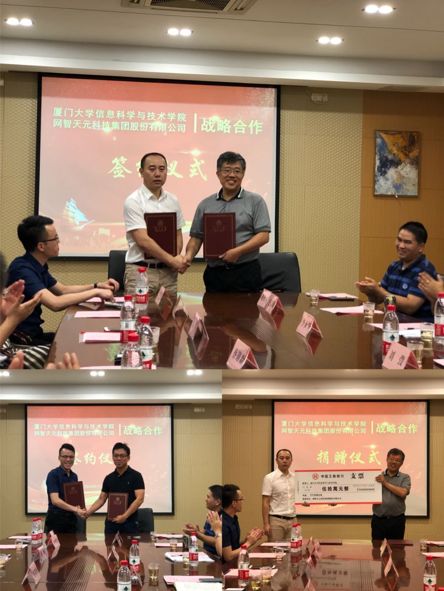 7月18日下午,我院与网智天元科技集团股份有限公司战略合作签约仪式在厦门大学海韵园行政楼C-610会议室隆重举行。学院党委书记刘弢、网智天元科技集团股份有限公司总裁蔡锦森、学院领导、各系师生代表及网智天元公司高管等四十余人出席仪式。