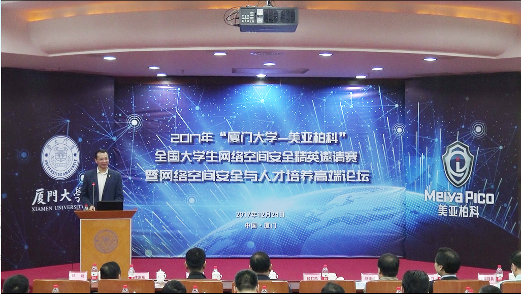 12月23-24日,2017年“厦门大学-美亚柏科”全国大学生网络空间安全精英邀请赛暨网络空间安全与人才培养高端论坛在厦门市美亚柏科信息股份有限公司培训中心、厦门大学成功举办。来自清华大学、北京大学、厦门大学等28所国内知名高校的29支顶尖战队受邀参赛。