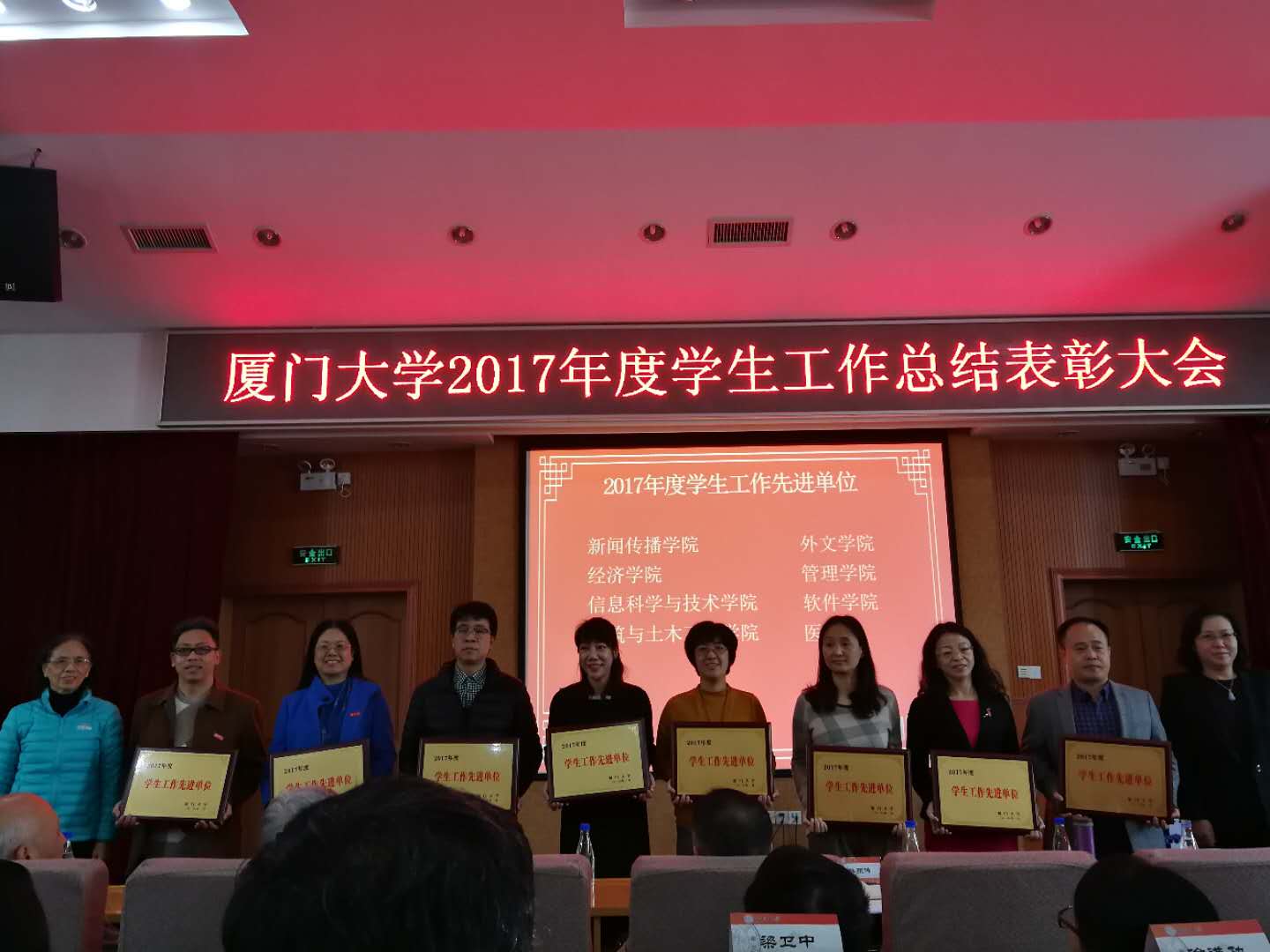 大会还对2017年度学生工作先进单位进行了表彰,全校一共8个单位获得表彰,我院成功入选。学院辅导员廖炜获得2017年度厦门大学优秀辅导员称号。