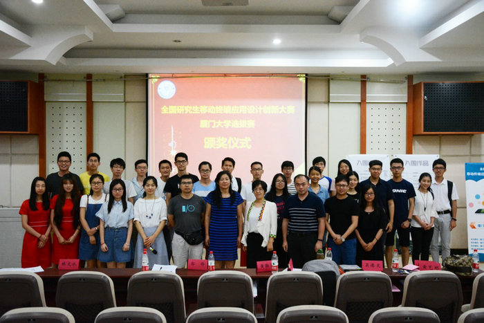6月22日,由厦门大学研究生院主办,厦门大学信息科学与技术学院承办的全国研究生移动终端应用设计创新大赛厦门大学选拔赛决赛暨闭幕式在海韵教学楼504报告厅举行。通信工程系教授黄联芬老师,通信工程系高级工程师汤碧玉老师,计算机系副教授郑炜老师,计算机系助理教授林文水老师,计算机系助理教授张哲民老师,智能系助理教授郭锋老师,信息学院创新平台副主任、厦门谷歌开发者社区组织者吴德文老师等六位老师受邀作为大赛评委,信息学院党委副书记李承华老师,信息学院团委副书记黄艺明老师等出席本次活动。
