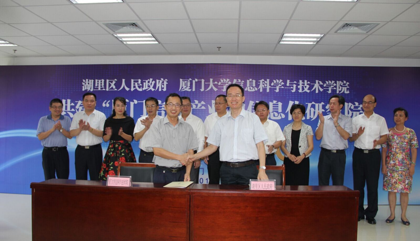 2015年10月9日,湖里区政府与厦门大学共建厦门信息产业和信息化研究院签约仪式及培育项目交流会在厦门市湖里区禾山街道办事处一楼大厅隆重举行。