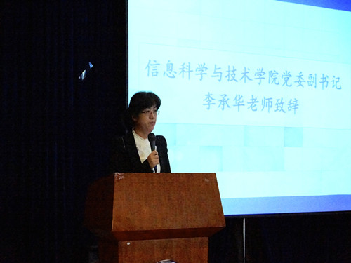 活动在震撼人心的回顾视频中开始,信息学院党委副书记李承华老师首先上台致开幕词。她说“数字校园行”系列竞赛活动已经成功举办十载,做出了特色、办出了水平,并指出数字校园行活动旨在在校园中营造“崇尚科学、勤奋学习、锐意进取、积极探索、勇于创新”的学习氛围,为同学们提供了一个挖掘自我潜力、展示自我风采的机会,她希望同学们能够积极投身于科技创新的实践活动中,为成为未来科技栋梁之才而不断进取。随后,信息学院学生会科创部部长谢淑颖为大家介绍历届赛事,详细说明了本届数字校园行的五个项目,并且强调此次活动是专业和非专业相结合,科技与艺术相融合,极大地激发了同学们参与对“数字校园行”系列活动的热情。