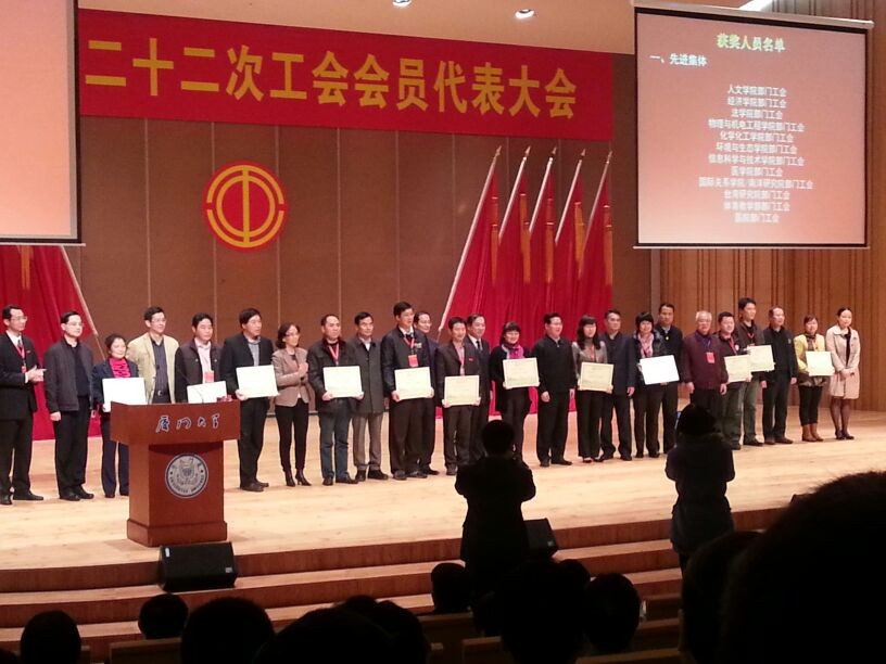 在2月27日下午刚刚闭幕的厦门大学第22次工会会员代表大会上,我院部门工会喜获“厦门大学工会先进集体”,倪子伟老师喜获“厦门大学优秀工作者”,付光辉、程曙艳和陈红三位老师喜获“厦门大学工会积极分子”,杨晨晖教授光荣当选工会22届委员会委员。我院参加本次代表大会的还有杨蔷、潘伟、黄悦等14位教师代表。 我院现有工会人员286人,在过去的三年中,我院工会组织在上级工会的指导下,在学院党委的领导下,依靠广大教职员工的支持,积极发挥工会的桥梁纽带作用,为服务大局,推动学院的改革、发展和稳定做出了积极的贡献。