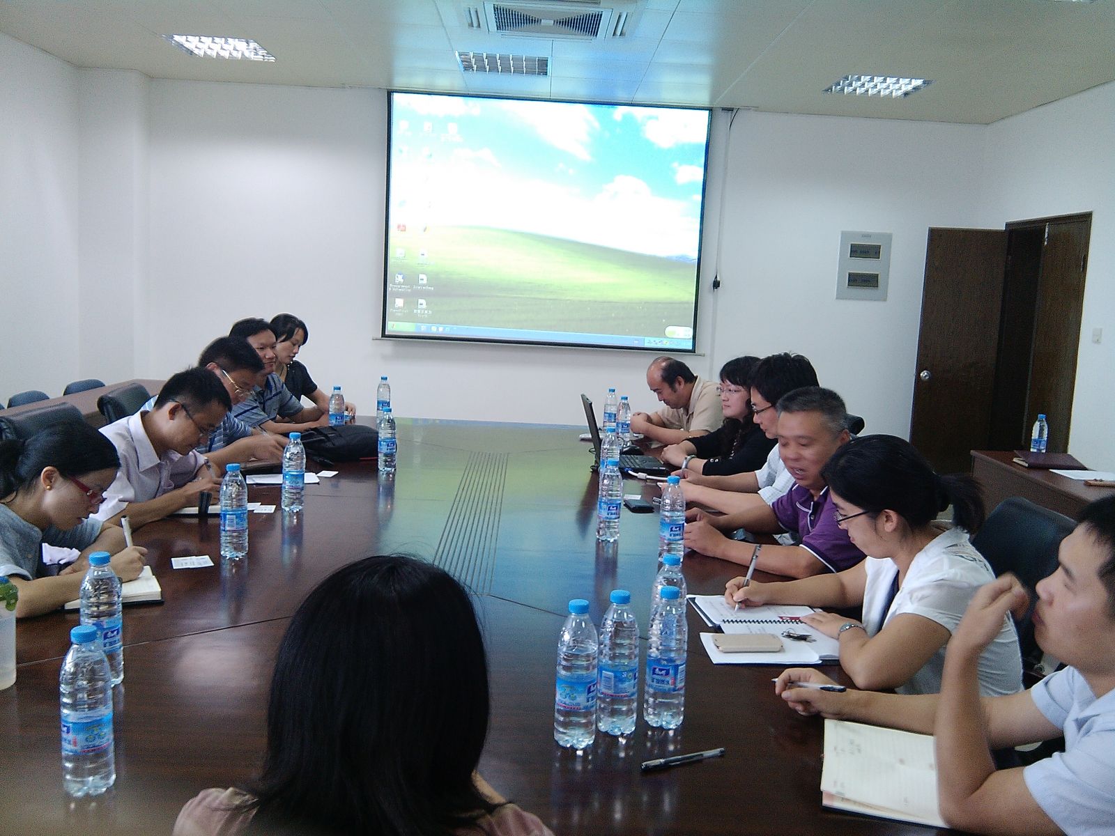 2013年10月14日下午,厦门理工学院光电与通信工程学院沈汉鑫副院长一行7人到我院进行学术交流活动,学院彭侠夫副院长、李承华副书记、电子工程系主任张保平教授、蔡志平教授、许惠英教授、张丹副教授、黄朝红副教授、罗正钱副教授,团委副书记刘晓峰参加了会谈。