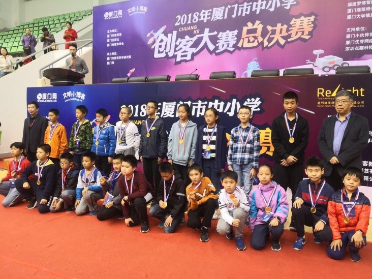 信息学院“中小学人工智能公益教育”活动得到中青校园、搜狐网、福建日报和青春厦大等校内外媒体的广泛报道,成效显著。2018年12月9日,在厦门市中小学创客大赛总决赛中信息学院“中小学人工智能公益教育”学员组成的参赛队伍,在五个项目比赛中均取得了瞩目的成绩。其中,编程猫项目一等奖4人,二等奖3人,三等奖1人;logoup 3D创客项目:一等奖1队,二等奖1队,三等奖1队;mirco:bit手工创客项目一等奖1队;动漫创客:一等奖2人,二等奖3人,三等奖2人;机器人创客项目:二等奖1队,三等奖1队。“科猿小队”中小学人工智能教育实践团荣获团中央“互联网+ 教育进城村”实践活动“优秀团队”、福建省“青年红色筑梦之旅”活动优秀项目奖、福建省暑期社会实践优秀团队。同时入选“2018全国大学生暑期实践百强团队”。