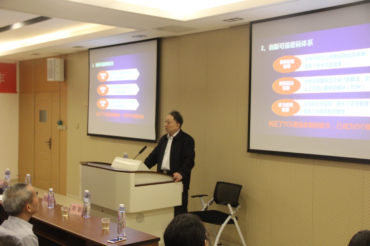 沈院士的讲座题目是《可信计算筑牢智慧城市网络安全防线》,从日益严峻的国际网络空间形势引入报告主题,立足我国国情,结合实际应用案例, 介绍可信计算3.0如何构建网络空间安全主动免疫保障体系。讲座内容贴近日常生活,通俗易懂;沈院士语言风趣幽默,现场气氛十分活跃。
