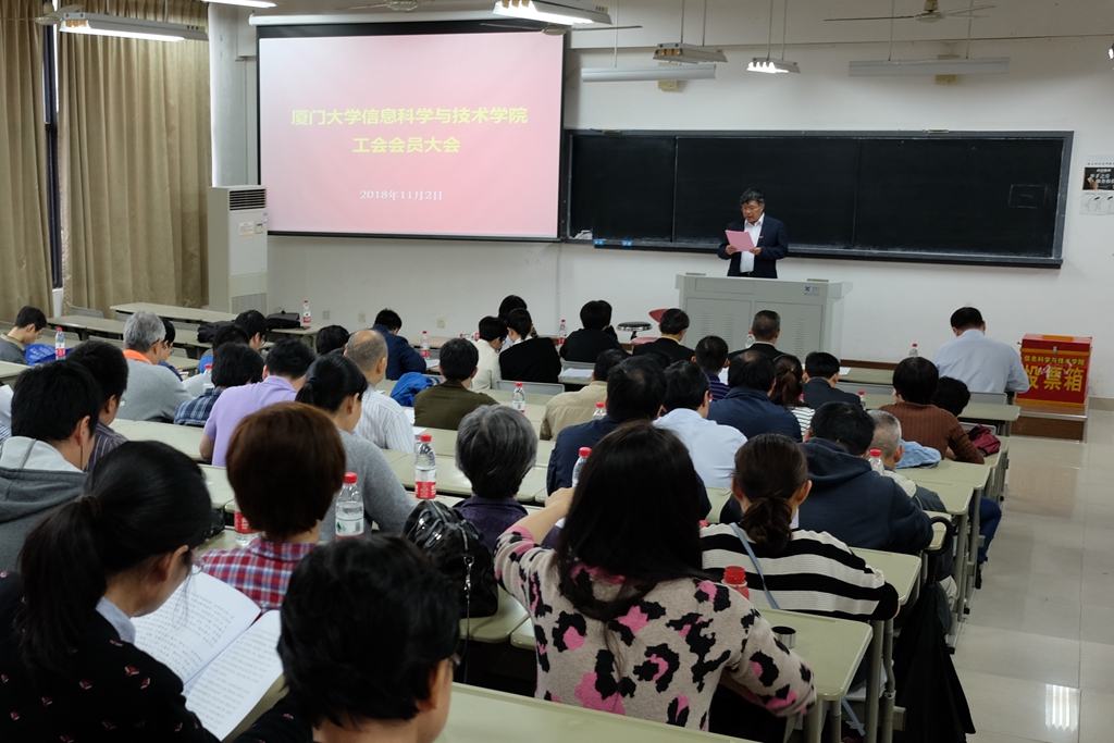 11月2日下午,信息科学与技术学院在海韵教学楼304召开工会会员大会,选举产生新一届工会委员会委员。学院党政领导班子,全体工会会员参加大会,会议由学院党委副书记杨蔷主持。