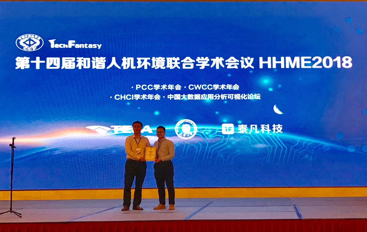近日,“第十四届全国普适计算学术会议(PCC2018)”在天津经济技术开发区成功举行。经过大会评奖委员会的匿名评选,我院电子与通信工程专业2015级研究生刘妍提交的论文“基于人群移动大数据的城市结构画像和动态感知”在会上荣膺“最佳论文奖”。我院助理教授陈龙彪博士参会并领取获奖证书。