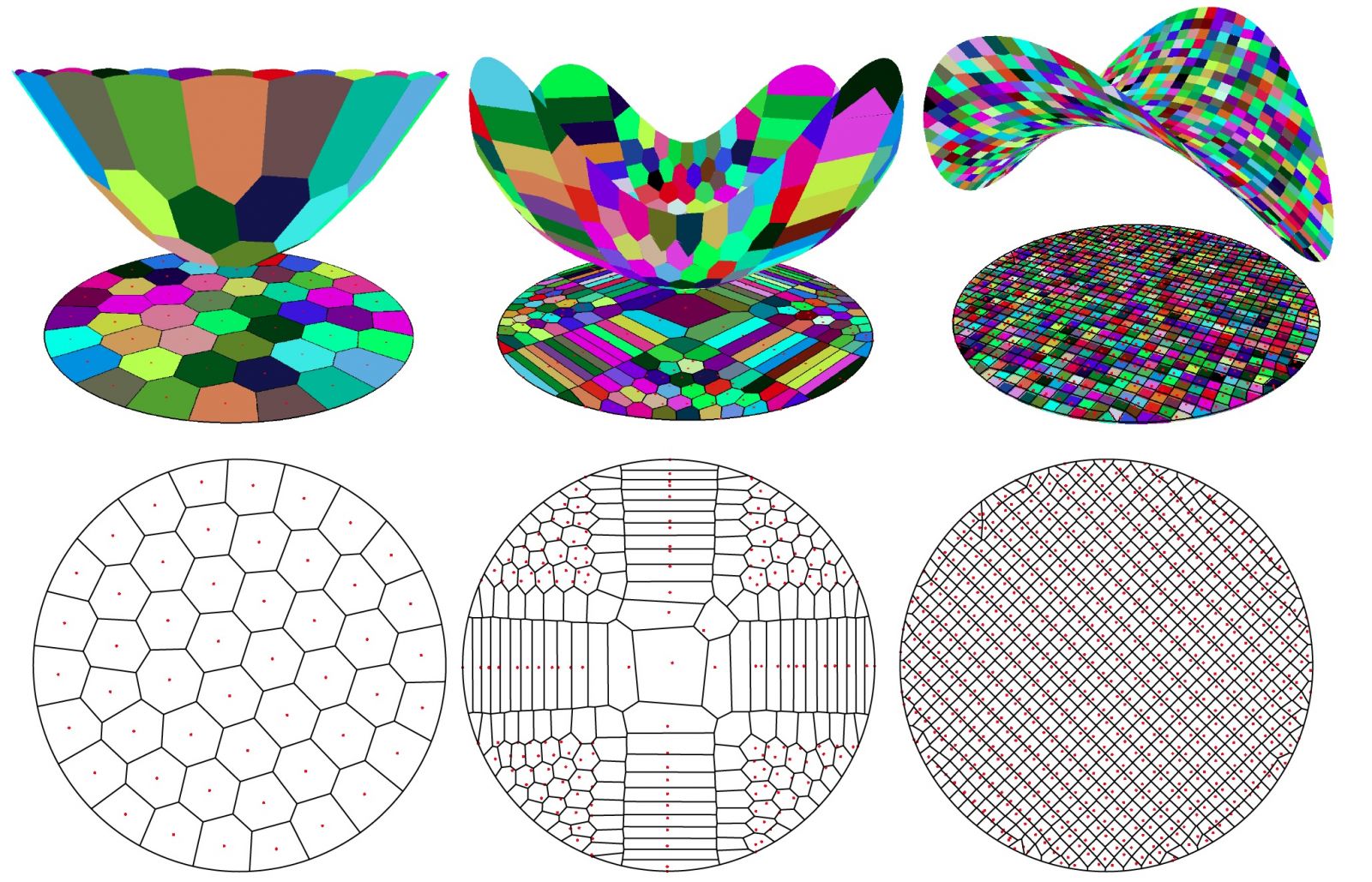 获奖论文利用Power图结构,提出了一种各向异性自适应凸多边形、多面体网格生成的变分方法。通过高一维空间中任意函数的分片线性逼近,定义了全新的目标优化函数,并根据目标函数的性质提出了有效的优化方法,建立了一套二维和三维空间中最优剖分求解的灵活框架。该方法生成的最优剖分结构与任意给定函数的Hessian矩阵各向异性高度吻合,打破了传统方法仅能应用于凸函数的局限性,在几何造型与处理等领域具有广泛的应用前景。