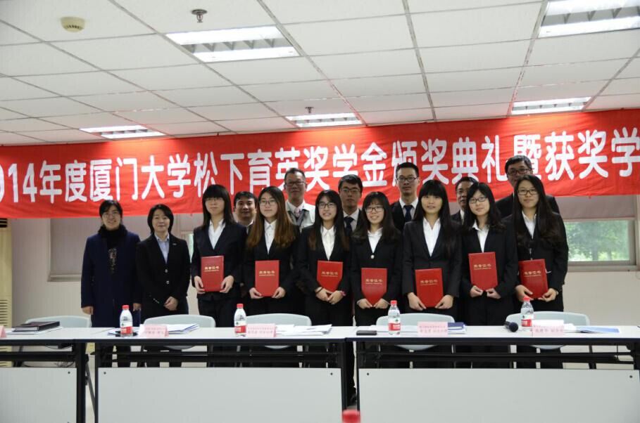 2014年12月25日下午, 2014年度厦门大学松下育英奖学金颁奖典礼暨获奖学生座谈会在厦门建松电器有限公司举行。中国友好和平发展基金会项目部经理董思嘉、厦门建松电器副总经理黄文贤、厦门市人民对外友好协会副会长张建华、厦门大学信息科学与技术学院党委副书记李承华以及刘晓峰老师出席颁奖典礼。