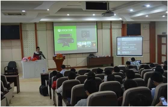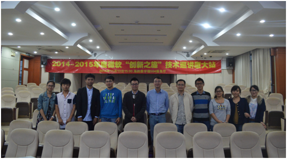 2014年11月13日,微软创新杯团队来到我校,开启微软“创新之旅”厦门站巡讲以及微软imaginecup大赛宣讲。本次巡讲由信息科学与技术学院负责前期宣传与现场组织,在海韵园教学楼504举行,现场约有200人参与。本次巡讲主要由两位微软讲师共同完成,他们分别是丁胜讲师和微软开发体验与平台合作事业部教育合作资深顾问杨滔讲师。