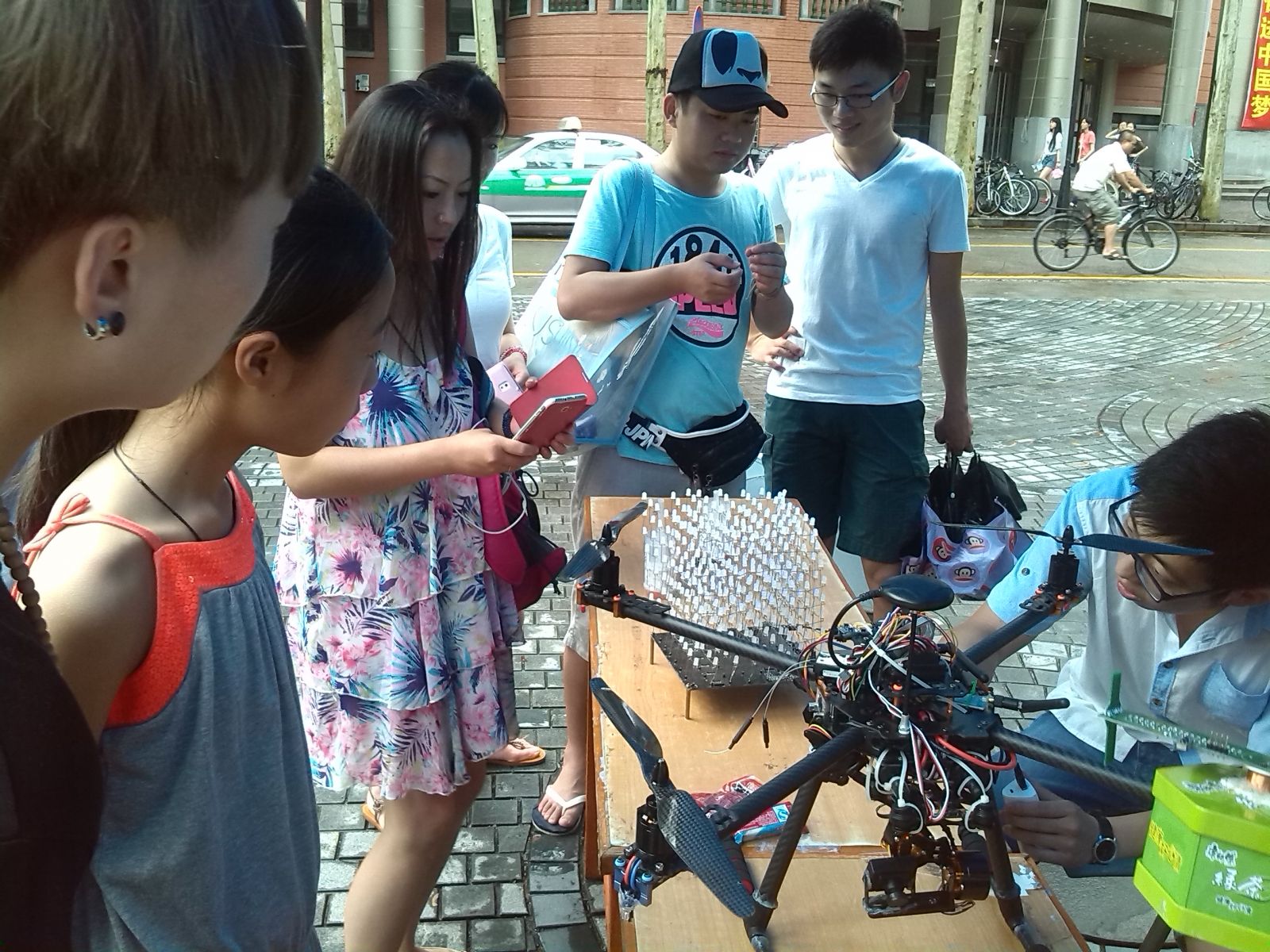 之后进入有奖竞猜环节,在场的观众们都积极参与,并以此进一步了解这次电子设计竞赛的相关情况。十一时许,开幕式圆满结束。开幕式现场设置了报名咨询处、作品展示处和游戏区域。在作品展示处,来自南强电子协会的同学向大家展示了自己制作的高科技电子作品,包括LED灯组、四轴航拍飞行器等等,吸引了众人的目光,也吸引和许多同学前来报名。