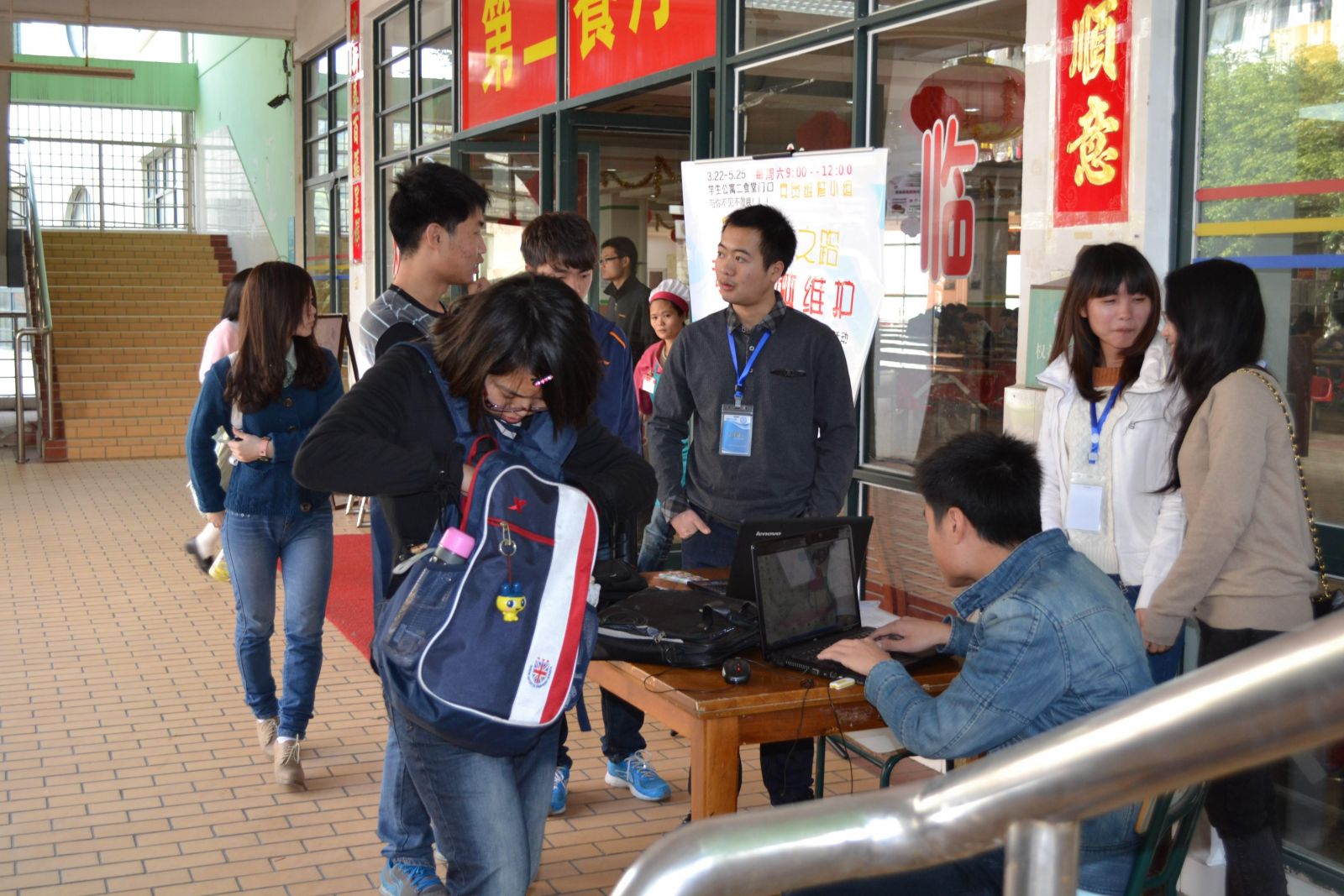 3月22日,计算机系党支部党员志愿电脑定点维护活动正式拉开帷幕。上午九点钟,志愿者们已经在海韵公寓二期食堂门口摆好了桌椅和宣传海报。路过的同学纷纷热情咨询电脑维护事宜,有的立马回宿舍拿电脑下来维护,有的向志愿者请教常见的电脑问题解决办法,更有热心的同学直接参与到活动中,同党员志愿者一起为全校师生服务。前来对电脑进行维护的同学络绎不绝,党员志愿者们也忙得不亦乐乎,场面热闹非凡。