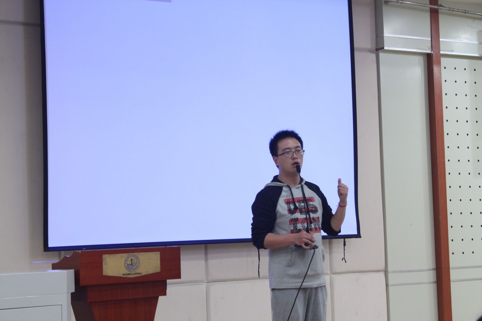 最后,现任校研会主席郑玮同学结合亲身经历谈了自己的一些体会,他从学生工作和日常生活中的一些小事说起,谈到为人处事的准则和方式,希望大家能从小处着眼,胸怀大志,仰望星空也脚踏实地。