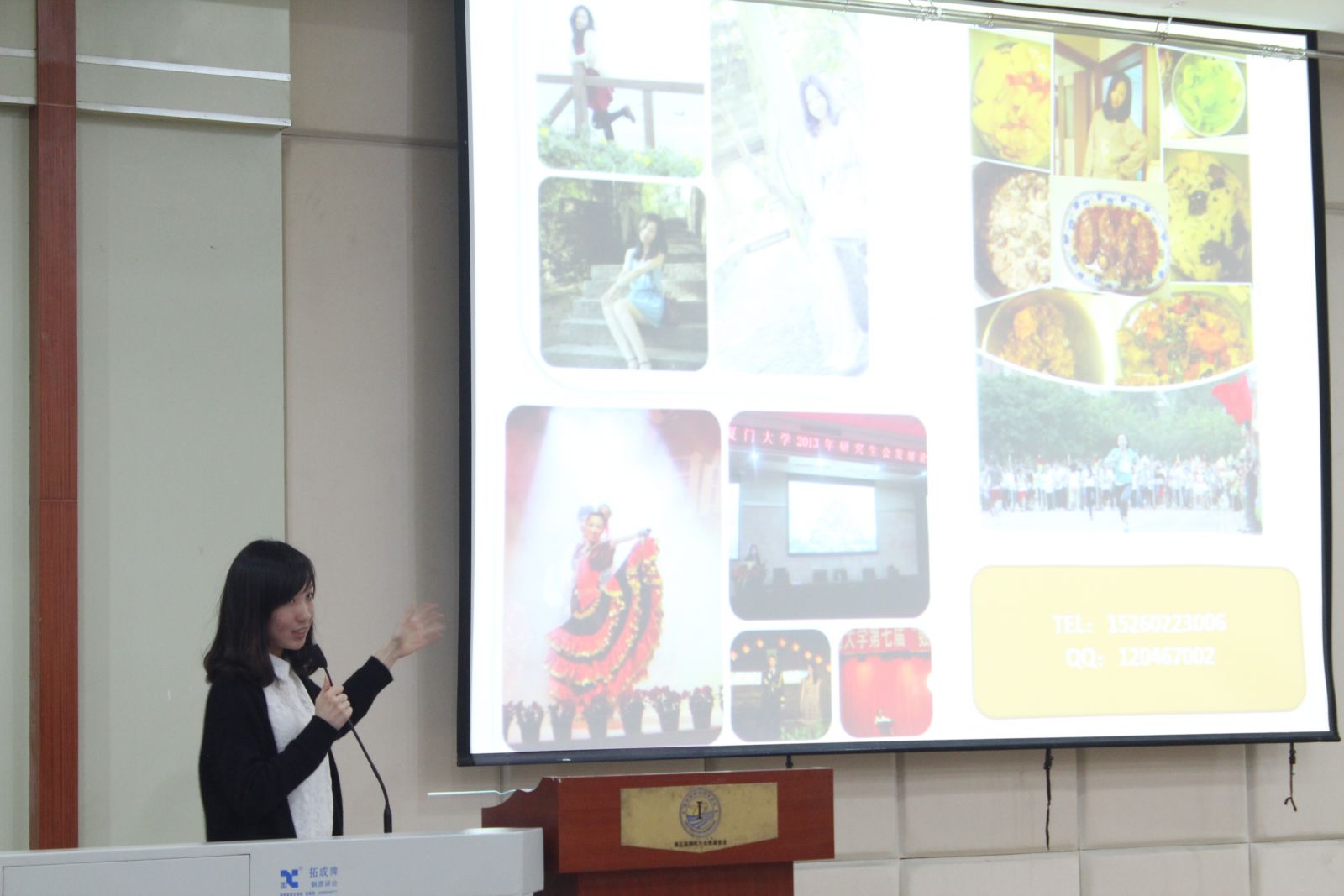 首先,信息学院第九届研会主席陈阳学姐第一个上台交流。她说“在研会,你可以收获正能量、骄傲和自信”,并重点与大家分享了自己找工作的经验和感悟,强调找工作一定要有好的表达能力,还要有自己的沉淀和积累。