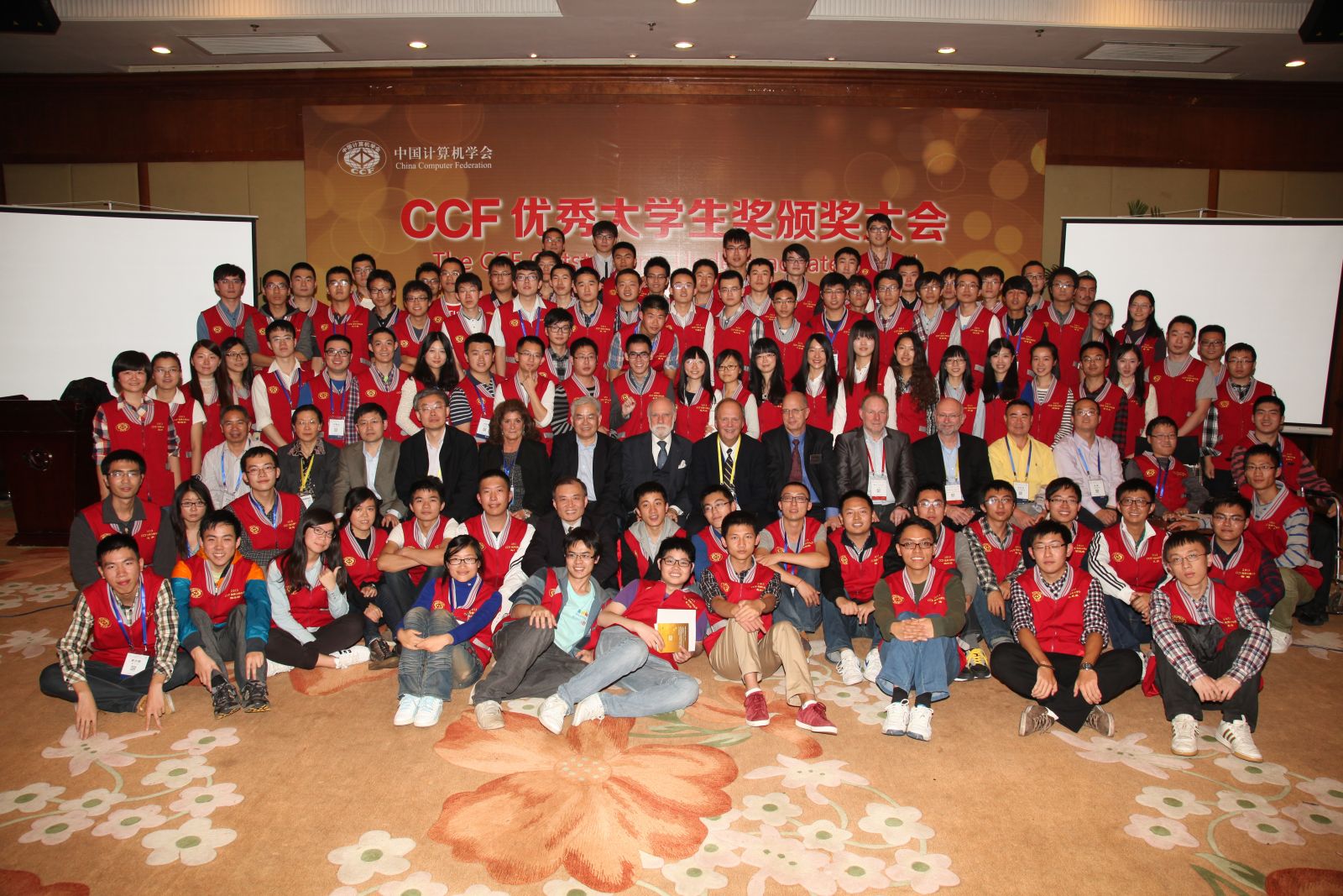 我院计算机系2013级硕士生蔡志鹏同学荣获2013年“CCF优秀大学生奖”,并受CCF(China Computer Federation中国计算机学会)全程资助参加了10月24日至26日的在长沙召开的全国计算机大会(China National Computer Congress,CNCC2013)。CNCC2013会议邀请了Google副总裁,图灵奖获得者Vinton G. Cerf等多位计算机界著名学者参会并做特邀报告。此外,“CCF优秀大学生奖”获得者还受邀参观了国防科技大学,蔡志鹏同学代表厦门大学信息科学与技术学院与来自全国的师生进行了关于大数据、计算机网络、云计算以及编程语言与环境等方面的交流讨论,并作为志愿者在颁奖大会上担任中文翻译。蔡志鹏同学作为厦门大学第一位获得该奖项的学生,为我院争得了荣誉。
