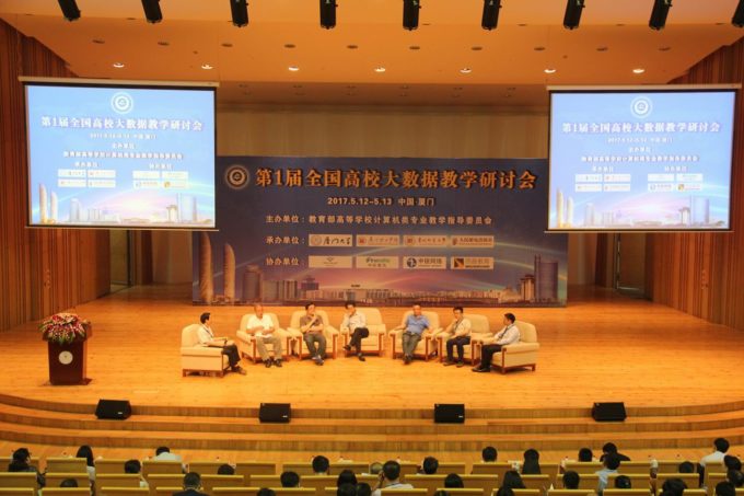 2017年5月12日至13日,第1届全国高校大数据教学研讨会(官网)在厦门大学科艺中心音乐厅隆重举行。本届研讨会由教育部高等学校计算机类专业教育指导委员会主办,厦门大学、厦门理工学院、贵州师范大学、人民邮电出版社联合承办,旨在搭建专业的大数据教学交流平台,汇聚全国高校大数据教学精英力量,共同探讨大数据专业和课程体系建设,为加快推进全国高校大数据教学发展贡献力量。来自全国300多所院校的400余名教师参加了本次研讨会。