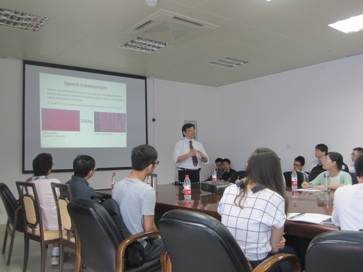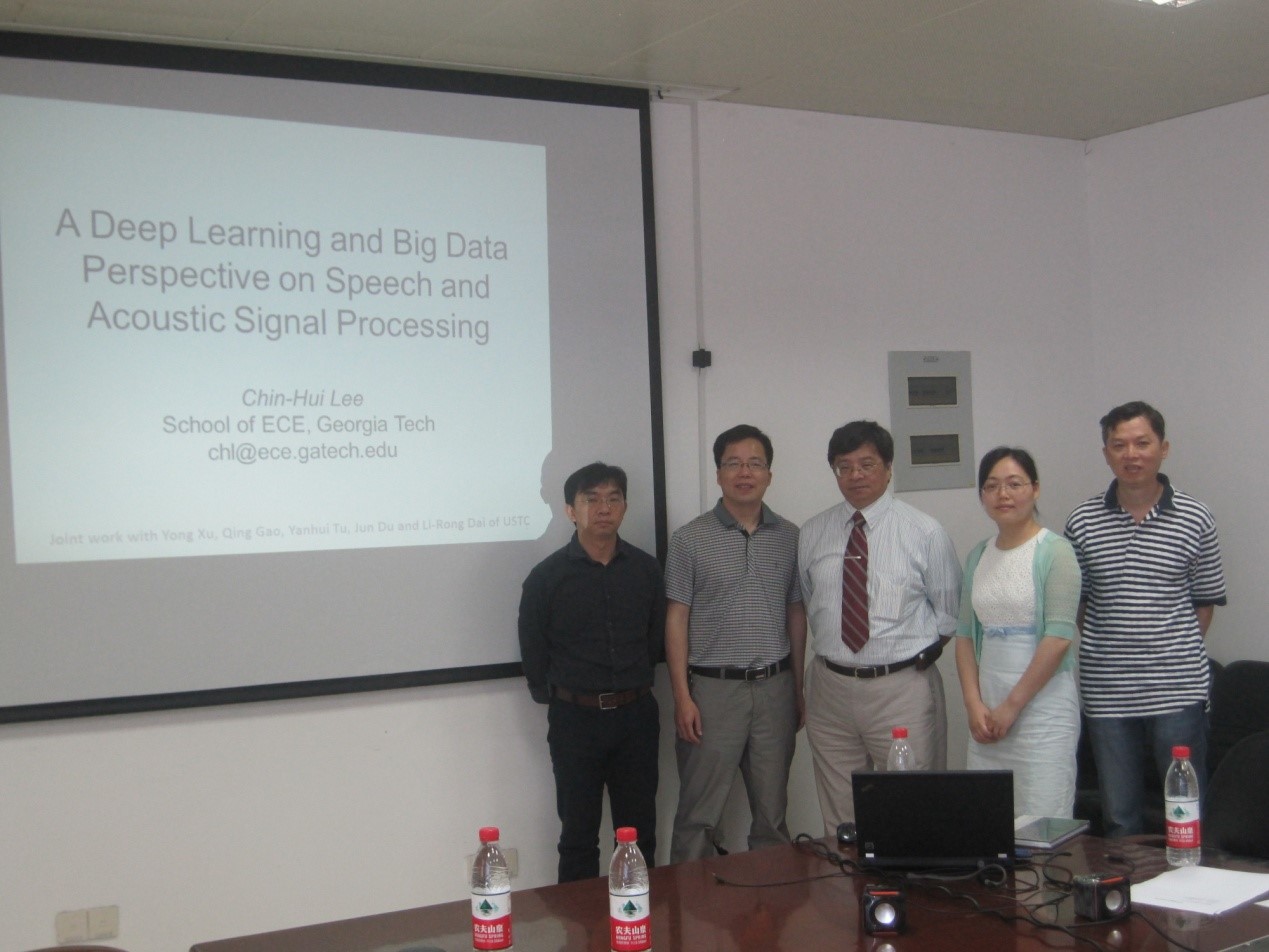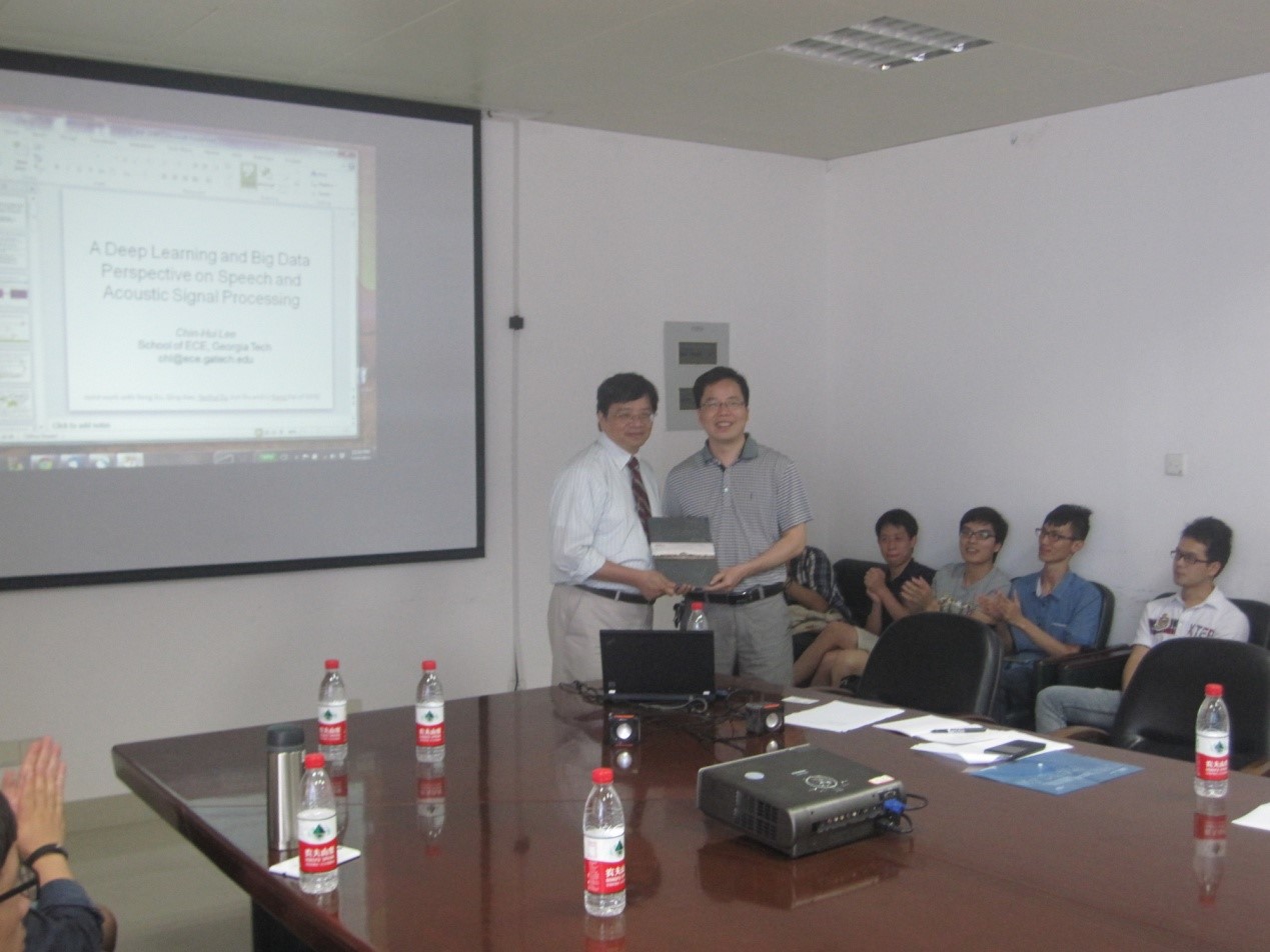 2015年5月15日,美国佐治亚理工学院终身教授李锦辉(Prof. Chin-Hui Lee)来访厦门大学信息学院,并做了《A Deep Learning and Big Data Perspective on Speech and Acoustics Processing》的精彩报告。报告由洪青阳副教授主持,智能科学系主任李绍滋教授介绍了李锦辉教授的简历,李琳副教授、江敏副教授、廖英豪副教授等老师,以及信息学院研究生共三十多人,一起参加了报告会。