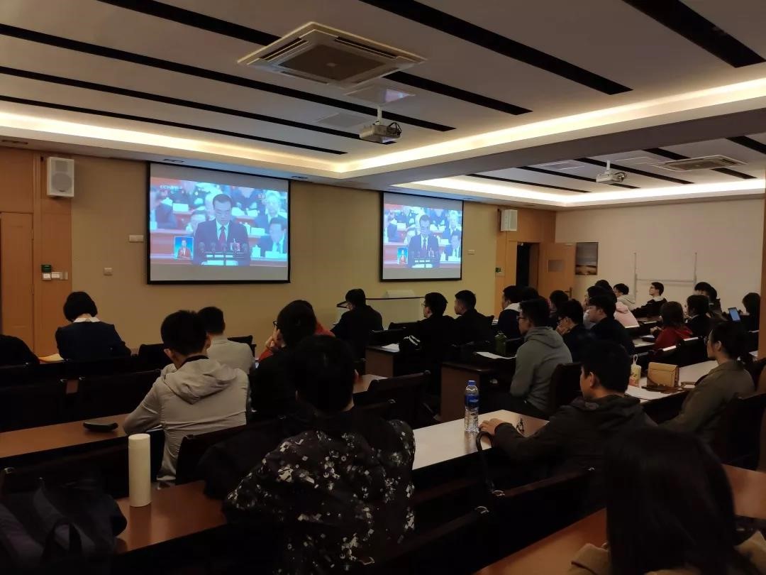 厦门大学信息科学与技术学院组织师生代表集中收看了会议开幕式。学院党委书记刘弢,副书记杨蔷、李承华,副院长吴爱仙,团委书记唐腾凤,副书记郑晖阁、黄艺明,全体辅导员以及学生党员代表、学生组织骨干、各年级学生代表等60余名师生代表参加。