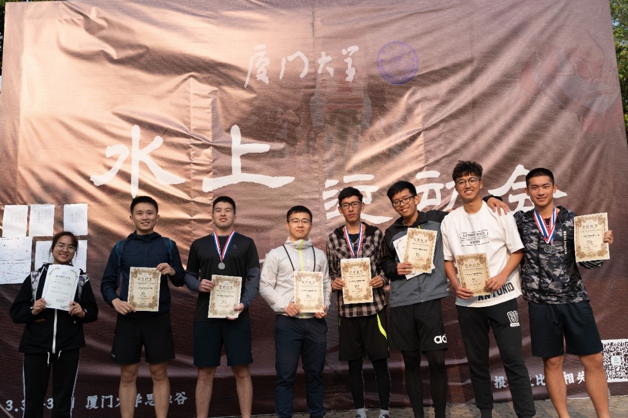在其他单项上我院队员亦有突出表现,其中林佳森获得男子皮艇第二名,胡聪获得桨板趣味赛第四名!最终我院取得了2019年厦门大学水上运动会龙舟赛总分第一的优异成绩,希望同学们能继续在各方面奋勇争先,再接再厉,再创佳绩!