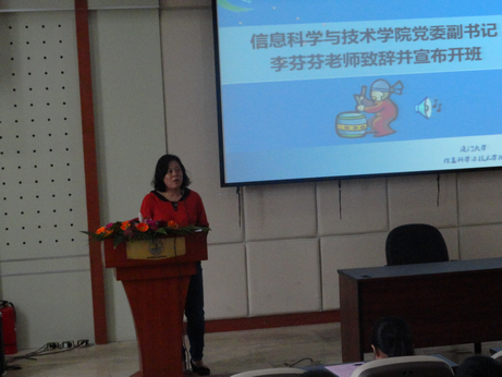 2012年11月11日下午三点,信息科学与技术学院2012级新生 “星火”骨干培训班在海韵504报告厅隆重举行开班仪式。信息科学与技术学院党委副书记李芬芬、厦门大学学生处教育科科长陈泗林、信息学院团委副书记刘晓峰、辅导员郑佳宝出席了开班仪式,参加仪式的还有本科2012级各班班委、学生会干事等100多名新生干部学员。