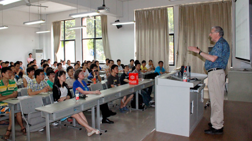 2012年6月2日(周六)上午,由信息学院主办的海韵讲座第12场在海韵教学楼102举行。图灵奖获得者John Edward Hopcroft教授为我们做了主题为Building a Science Base for the Information Age(为信息时代建立一个科学基础)的学术讲座。