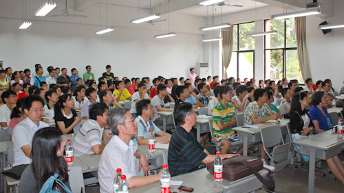John Edward Hopcroft 教授的讲座从计算机领域研究对象开始,利用丰富的实例及生动的图象数据资料,为大家展示出信息时代对计算机科学理论基础的需求,提出了一个简短的未来愿景,并在互动环节认真回答了老师及同学们的问题。谦虚严谨的治学态度和开阔睿智的思想让大家深受感染,为我们开拓了全新的视野,赢得了热烈的掌声。他的来访对我校在计算机科学领域的研究起到很大的促进作用,讲座圆满结束后,大家纷纷表示受益匪浅。