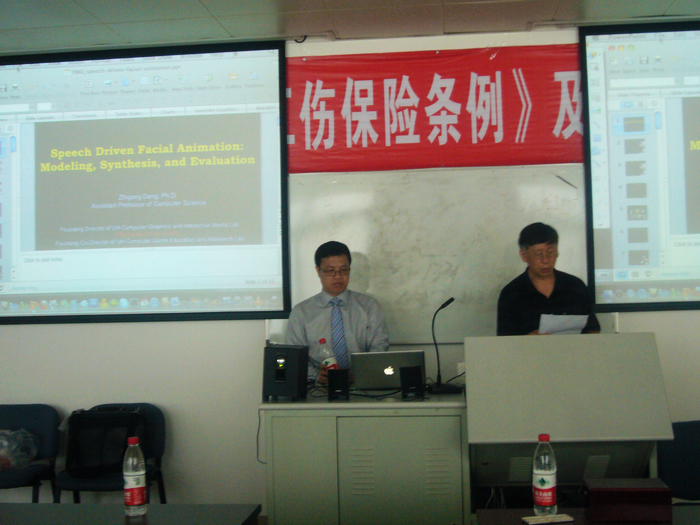 2012年6月11日上午,在海韵行政楼C座505报告厅,美国休斯顿大学计算机科学系的助理教授邓志刚博士开展了一场主题为Speech Driven Facial Animation:Modeling,Synthesis,and Evaluation(基于语音的脸部动画:建模,合成与评估)的讲座。