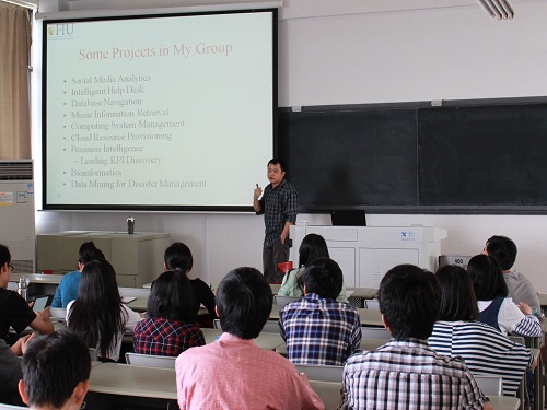 讲座摘要:With the popularization of online social media, the volume and complexity of user generated data (e.g., blog posts, web pages, comments, tweets) are explosively growing. Social Media Analytics refers to methods and algorithms for modeling and analyzing social media data and it draws techniques from social network analysis, machine learning, data mining, information retrieval, and natural language processing (NLP). In this talk, I will first give an introduction on social media analytics and then present some of our current research efforts on developing novel data mining and machine learning techniques for social media analytics. I will also give an overview of some other research projects that we are currently working on such as matrix-based methods for data mining, intelligent help desk, intelligent cloud management, and disaster management.