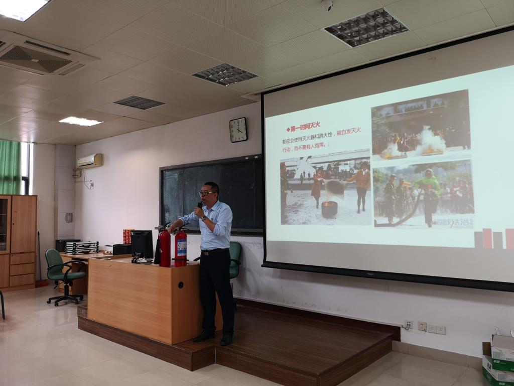 此次安全培训活动由学院杨蔷书记主持。近两个小时的安全讲座培训内容十分丰富,林乐坦老师用生动的语言向师生介绍了各种类型的火灾,以及不同情况下不同的灭火和逃生方式和常见的消防设备,并通过近几年发生在社会、高校的触目惊心的火灾案例,在师生中敲响了消防安全的警钟。