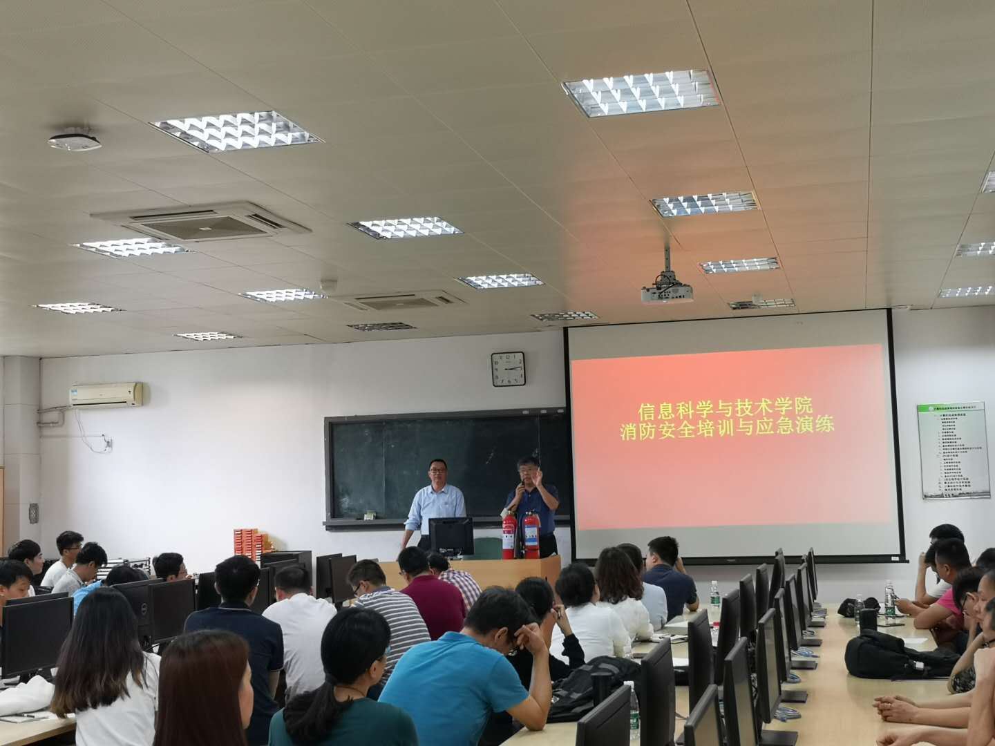 5月16日下午,信息学院在海韵园校区实验楼301举行了别开生面的消防安全培训活动,培训邀请了厦门市消防支队和思明区消防大队培训讲师林乐坦老师为师生进行讲解培训。学院高度重视此次安培培训活动,信息学院党委书记刘弢,党委副书记副书记杨蔷及李承华,学院团委,实验中心教师,各实验室安全责任人代表以及学生代表参加了此次活动。