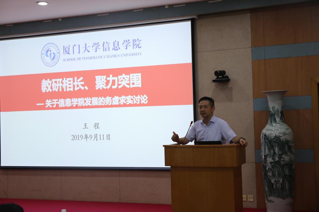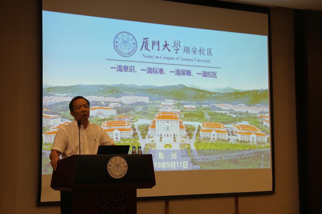 陈光校助以《一流意识、一流标准、一流保障、一流校区》为题,结合建设规划、功能定位、在校师生、入驻单位、科研平台、基本建设等翔安校区的基本情况作了系统解读,对校区的机构设置作了详尽说明。陈光校助表示将尽校区一切可能支持信息学院建设,坚定和鼓舞了学院教师员工办好信息学院的信念与信心。