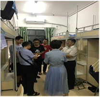 大会期间,还组织全体老师深入新生宿舍,并参加新生开学典礼。9月11日晚,与会76名教师分成23组走访233间宿舍,在中秋佳节来临之际,为新生同学送上月饼,解疑答惑,带来温暖。9月12日上午,与会老师全程参加了新生开学典礼。容纳近600人的德旺图书馆报告厅座无虚席,有如此众多的老师一同参加新生开学典礼,在信息学院建院史上尚属首次。这两场活动进一步拉近了师生之间的距离,温暖了新生同学的心,展现了信息学院党委和领导班子着力加强宿舍“家”文化的信念,也是对“三全育人”的深入实践。