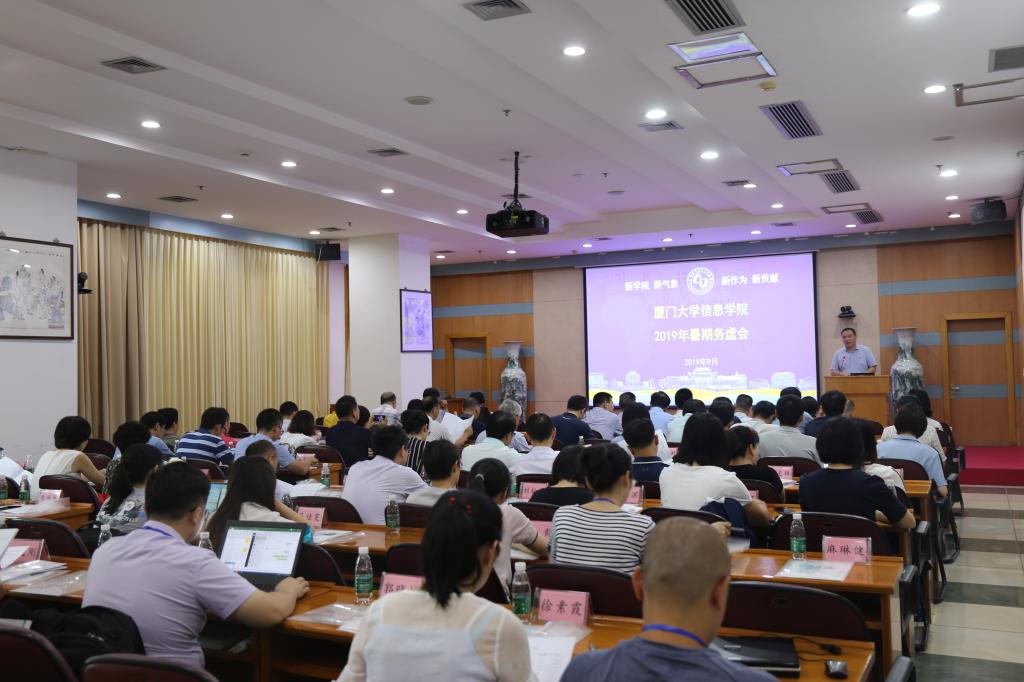 9月11至12日,信息学院2019年暑期务虚会如期举行。学院党政领导、院系主任、全体教授、青年教师代表、科研平台、实验教学中心负责人、教工党支部书记、党政管理人员等共计76名教师员工代表齐聚一堂,为推动新学院新融合,形成新气象,展现新作为而建言献策。
