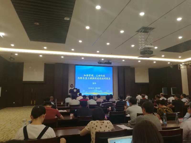 学院办公室主任孙平以《加强管理,主动沟通为师生员工提供优质高效的服务》为题,从行政后勤服务人员爱岗敬业的感人案例切入,讲述行政后勤老师默默无闻付出奉献的幕后故事,呼吁党政后勤队伍与教师队伍之间相互理解、相互沟通、相互融合,用真诚、爱心、微笑踏实做好服务工作,为师生员工提供高效优质的行政服务支撑。