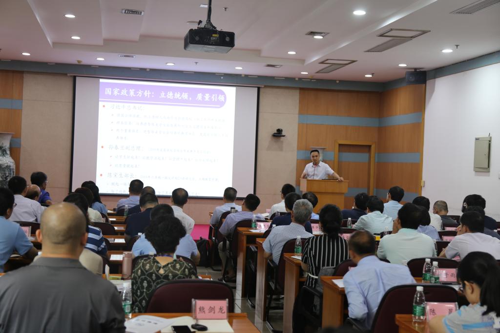 洪学敏副院长就本科生人才培养作《质量引领,养正出新,全源育人》专题报告。他结合“立德统领,质量引领”的国家政策,从建金专、建金课、造金师、植质保、建高地等五大主攻方向简述了国家提高教育质量的系统性举措,并就两院融合与校区搬迁背景下的学院人才培养现状采用“SWOT”模式做细致分析与全方位比较,随后归纳分析了本科生人才培养过程中的具体问题及解决思路。